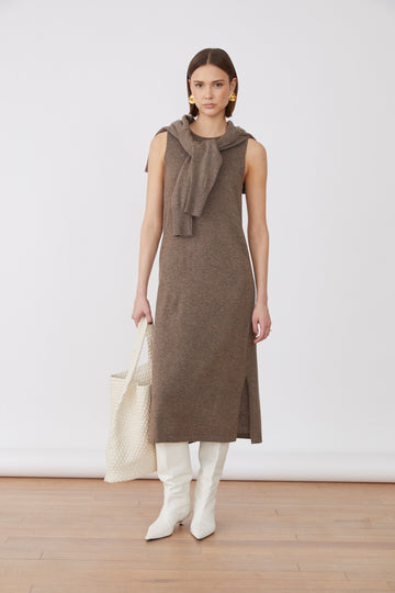 A timeless knit silhouette with effortless appeal. The Foulard Dress falls fluidly to a midi length, featuring subtle side splits and a clean sleeveless cut — perfect for layering or wearing alone. Refined and versatile, it’s a piece that moves seamlessly from day to night.