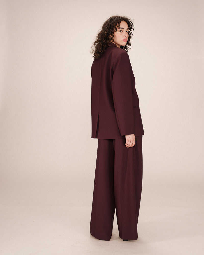 The STRONG tailored blazer embodies bold elegance and is inspired by menswear. The straight cut and notched lapel collar create a structured and timeless silhouette. The welt pockets and horn-effect buttons add a touch of understated refinement. The STRONG blazer is a must-have piece in the feminine wardrobe. The model is fully lined.