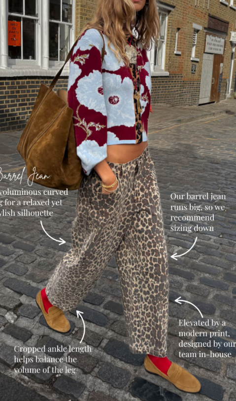 These are a must have this autumn/winter! The barrel leg gives you that chic, relaxed shape while the our iconic leopard print adds just the right amount of drama. Super comfy with a structured fit that still feels effortless. We've styled them with our bestselling poppy cardi for the colder seasons but you could also style down with a simple tee and heels, they go with everything!