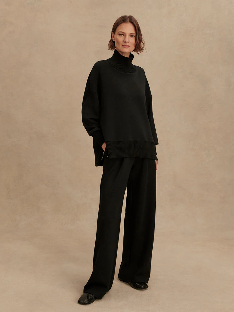This essential sweatshirt in our DoubleSoft® fabric boasts an oversized fit and modern high-neck design. Complete with knitted cuffs, neck, and hem, it includes deep side splits for enhanced movement and style.