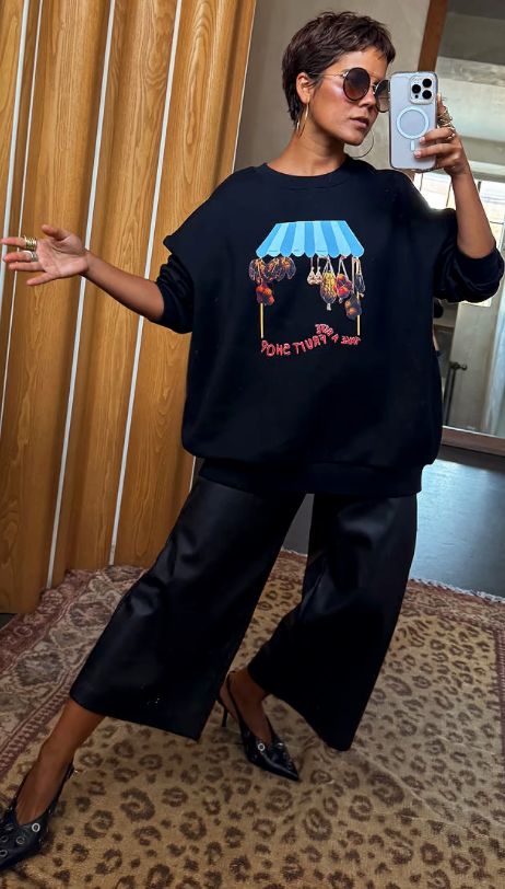 A casual sweater, featuring our fruit shop print, a mix of digital and hand painted print, created by our in house design team and inspired by the culture and atmosphere of Mexico! With a relaxed fit and dropped shoulder seams it’s an easy option whether you're dressing down with jeans and trainers or adding to a blazer and our leather culottes for a night out!