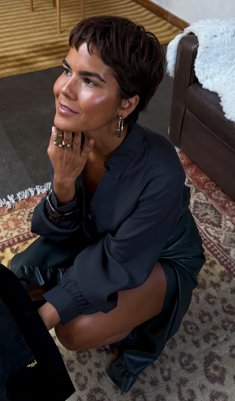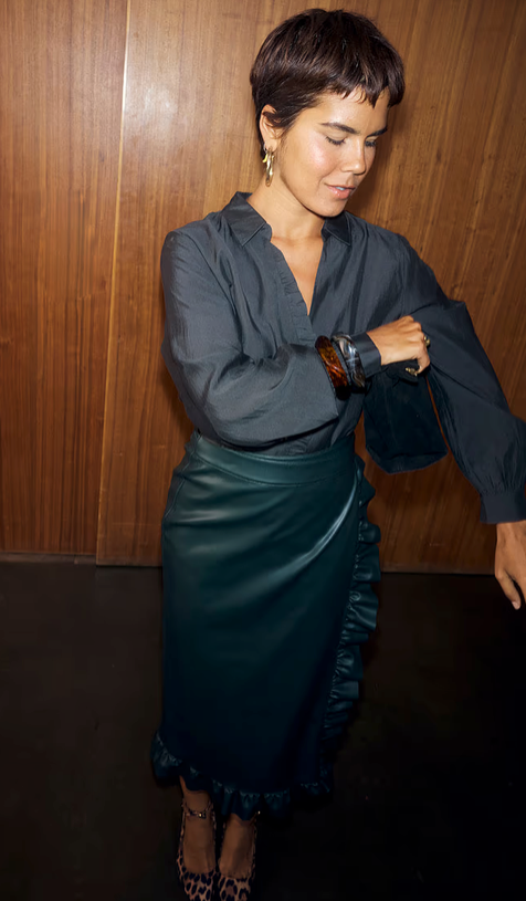 Our classic miley shirt with a twist! With blouson sleeves, a floaty silhouette and ruffle detailing along the button stand for an added touch of texture. We have added contrast tortoise buttons for an extra touch of interest and gorgeous embroidered logo on the back neck.