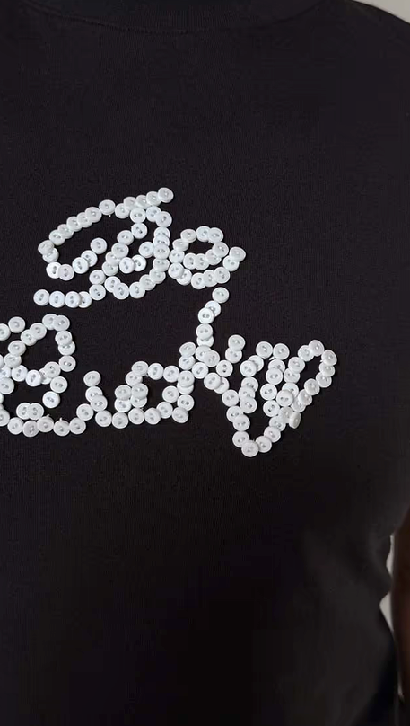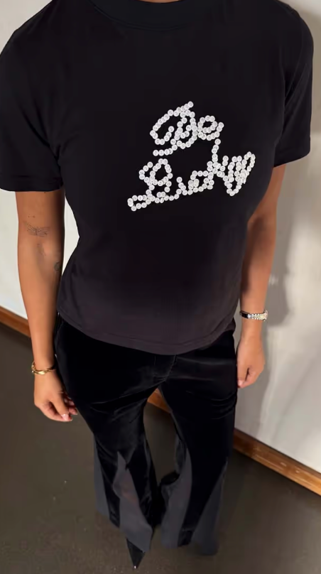 Our gorgeous be lucky tee embellished with small buttons that add some texture to the simple structure. Designed with a slightly more fitted silhouette that a regular tee, pair with a mini skirt and heels, or our scallop jeans, for a casual day to night look.